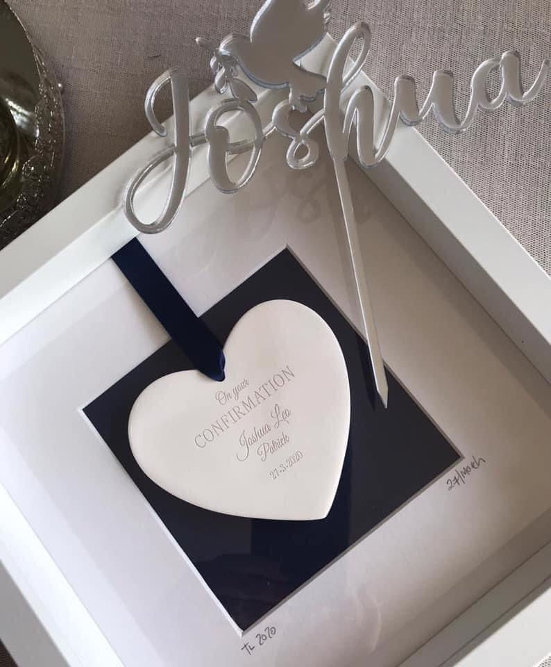 Framed Ceramic Heart "On Your Confirmation/ Communion Day"